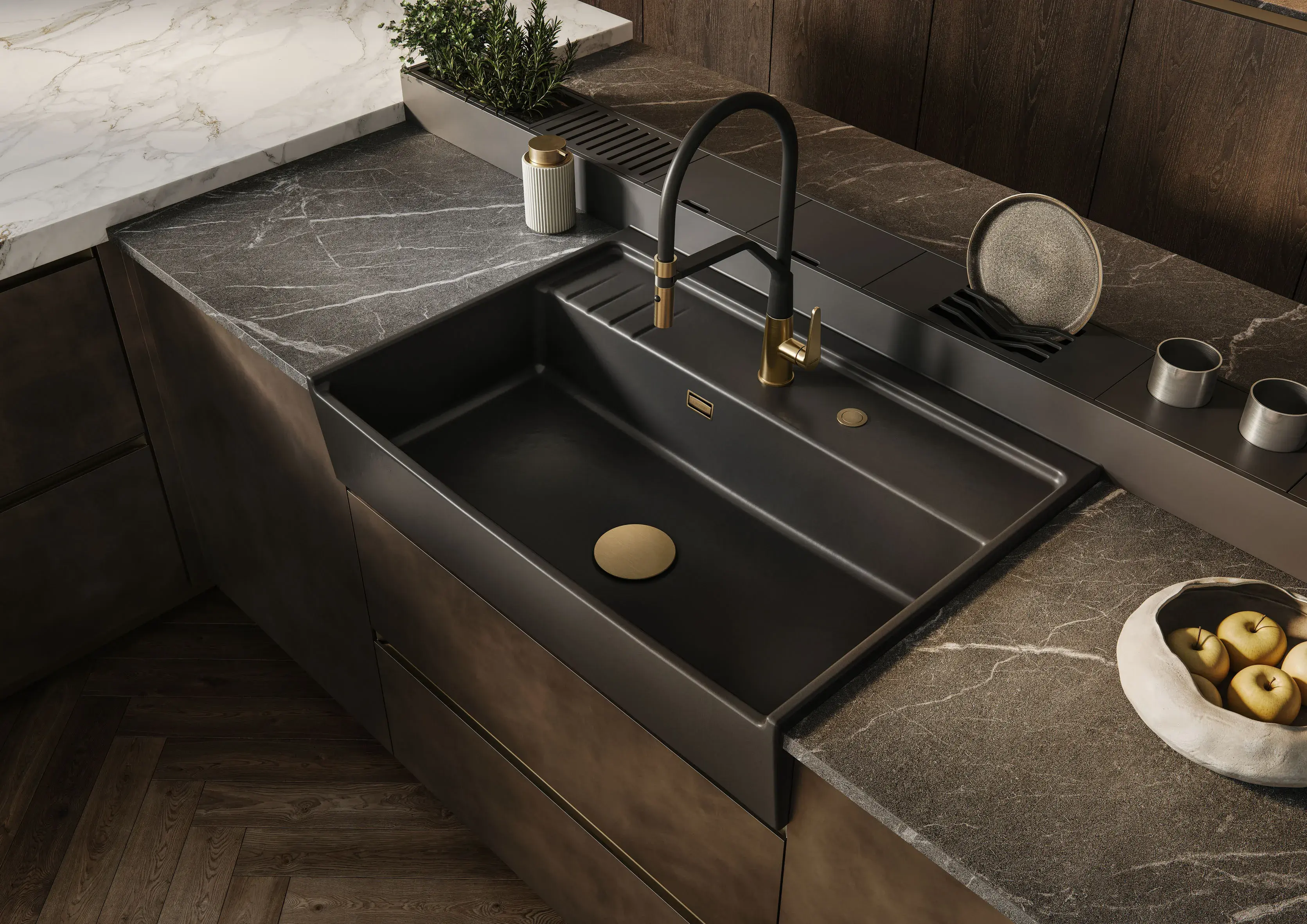 Küchenspülen sind der am häufigsten benutzte Arbeitsplatz in der Küche. Umso wichtiger ist eine Spüle, die robust ist und gut zu nutzen. Spülen aus Steinzeug erfüllen diese Ansprüche bestens. Die Keramikspülen von systemceram verfügen über höchste Schlag- und Stoßfestigkeit, sind schnittfest, kälte- und hitzeresistent. Die mit 1200 Grad Celsius gebrannte Keramik ist sogar feuerfest. Damit ist sie nahezu unverwüstlich, dauerhaft funktionsfähig und immer schön anzuschauen.